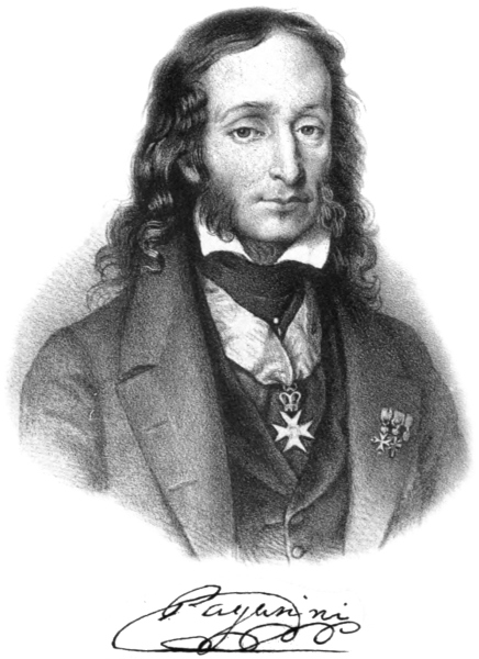 Nicolo Paganini, the most extraordinary—the most renowned violinist of the nineteenth century—was born on February the 18th, 1784. His father, Antonio Paganini, a commercial broker, or simply a broker’s clerk, according to some biographers, was passionately fond of music, and played upon the mandoline. His penetration soon discovered the aptitude of his son for this art. He resolved that study should develope it. His excessive27 severity would have probably led to results contrary to those he expected, had not the younger Paganini been endowed with the firm determination of becoming an artist. From the age of six years he was a musician, and played the Violin. The lessons he received from his father, as may be presumed, were not given in the most gentle manner. The ill-treatment to which he was subjected during this period of his youth, appears to have exercised a fatal influence upon his nervous and delicate constitution. From his first attempts he was imbued with the disposition to execute feats of strength and agility upon his instrument. His instinct urged him to attempt the most extraordinary things; his precocious skill exciting the astonishment of his young friends. His confidence in the future was not to be shaken, from the fact of his mother saying to him one day, “My son, you will be a great musician. An angel, radiant with beauty, appeared to me during the night, and, addressing me, spoke thus: ‘If thou wouldst proffer a wish, it shall be accomplished.’ I asked that you should become the greatest of all violinists, and the angel promised the fulfilment of my desire.”