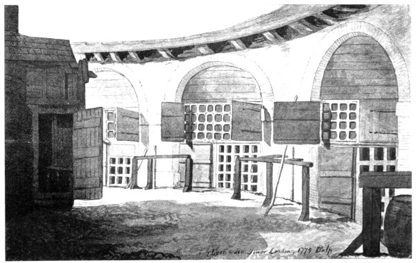A few more names have to be mentioned before we close the history of the Tower as a State prison. John Wilkes, M.P. for Middlesex, was brought in on April 30, 1763, as the author of No. 45 of The North Briton, which was styled in the warrant committing him, “a most infamous and seditious libel.” After argument in the Court of Common Pleas, Chief Justice Pratt decided that the misdemeanour charged against him was “not an offence sufficient to destroy the privilege of a member of Parliament,” and he was immediately liberated (May 3). Alderman Oliver and Sir Brass Crosby, Lord Mayor, were both sent to the Tower in March, 1771, for admitting a man to bail who had, under the Speaker’s warrant, apprehended the printer of the London Evening Post for publishing the debates of the House of Commons. They justified their conduct on the ground of city privileges, and the House against them asserted its authority. They remained immured till Parliament was prorogued in the following July, and were then released; but public opinion was evidently so strong in their favour that the Commons from that time gave in. Lord George Gordon was imprisoned after the riots of 1780, was tried next year, and declared “not guilty.” At the same time the Earl of Pomfret was committed for challenging the Duke of Grafton. In 1794 John Horne Tooke, John Thelwall, Thomas Hardy and others were imprisoned on the charge of high treason. They had distributed the writings of Thomas Paine, and had gone certain lengths in favour of the “Rights of Man,” but repudiated the application of the principles of the French Revolution to England. They were “radicals” in desiring reform, yet were not in favour of general subversion. In fact, they were men who, after raising a cry, were frightened at the logical consequences of it, and settled down into quietude. Chief Justice Eyre tried them with conspicuous fairness, and they were at once pronounced “Not guilty,” to the satisfaction of the spectators.