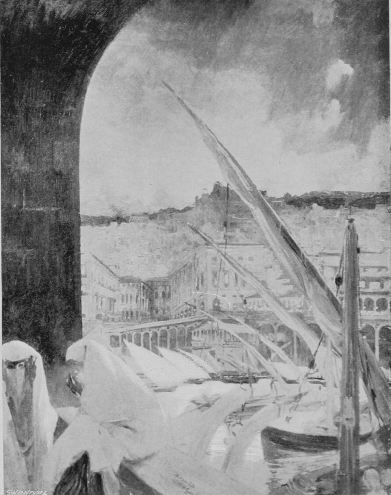 “My method of work is not different to that of the other masters,” Besnard says. “I first make a design in wash and then colour it liberally, put in all the{154} vibration that I see and feel in nature.” (He has chosen his definition happily, Vibration is a distinct quality of his work). “I am really glad you do not think I represent a school! I feel myself a solitary as far as my art goes.... I love motion, and action, and variety, and yet withal I am a dreamer, completely lost in my conception and in my mental preparation for my work. For this reason, perhaps because I am so constantly absorbed in the world of imagination, my taste in literature is for modern things—for immediate things, if I may so say. I rise at seven in the morning, and am at work at nine. I paint until luncheon, and rarely do good work in the afternoons. I take my inspirations, the ideas for my pictures, from everything that surrounds me. I cannot tell from where they come, but I am always seeking to accurately arrange my ideas and render my conceptions and my translations of them harmonious.”
