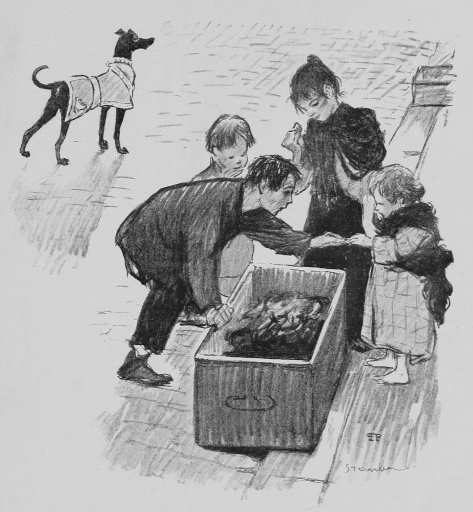 It is false to suppose that Steinlen does not give to each of his creations the greatest pains. For the little volume called “Le Chien de Brisquet”[A] he made eighty drawings for Anatole France before he got one to his satisfaction, and it was for “Le Chien de Brisquet,” which volume of drawings it will be difficult to surpass, that Steinlen drew and re-drew his canine sketches. “Although,” said Monsieur Pelletan, “I assure you I was quite satisfied with the first drawings!”