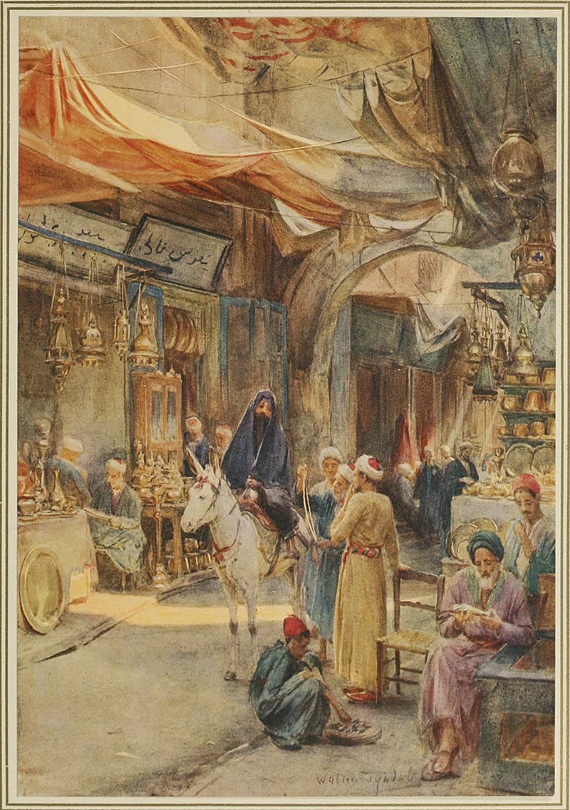 Needless to say, it was a brilliant morning, for the occasional grey days of midwinter were still a long way off. Great awnings hung across the street, and on one side the shopmen were lowering blinds or rigging up matting, in anticipation of the sun which would shortly be streaming down on them. Everything still had its summer look, though October was far spent;—and2 Cairo, let me say, is much more beautiful in hot weather than during the comparatively chill days of winter.