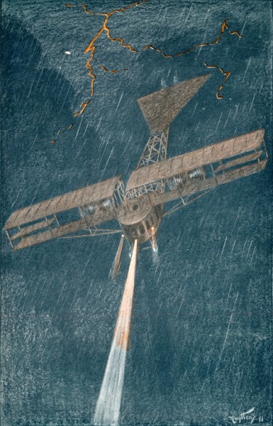 The compartment was now inclined forward and to the left. Phil, only partly convinced, turned his head toward the opening in the floor when, with a crash of thunder, the clouds opened again to release new torrents of rain and the world below lay exposed beneath the flash of more lightning.