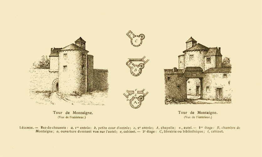 3e vol.—Vue de la tour de Montaigne et plan des étages.
