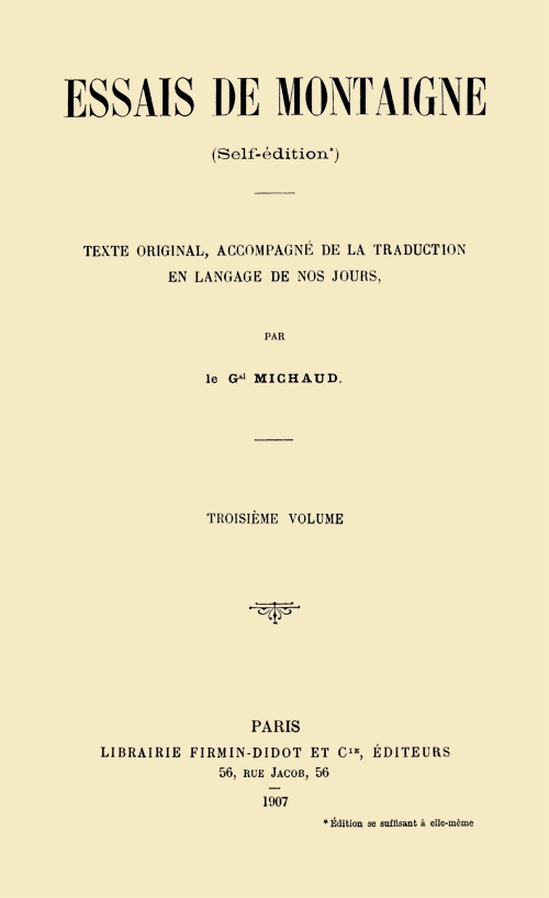 Title: Essais de Montaigne (self-édition) - Volume III