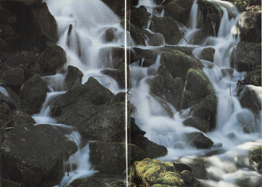 A short distance beyond, the trail breaks out onto the top of a cliff, opening to us the whole breadth of the mountains. This is our final reward; and as we sit here we see, without knowing it, a summary of our day’s experience. We see landslide scars on the mountainside that probably came during a storm like the one we just experienced, when the earth, heavy with water and lying thinly over the smooth rock beneath, could no longer hang on and slipped in a crashing avalanche down the slope; like the pine beetle, landslides are one of the many natural forces that challenge the forest’s powers of recuperation. Chimney swifts pick insects from the air and we hear the chatter of a red squirrel interrupted in its hunt for cones. Like the shrew, each in its own special way is busy gaining the fuel to stay alive. Each, through its interaction with plants and animals, affects the total fabric of Smokies life. Far below, the trees of a cove forest march up a stream valley; on the slopes above them spreads a mantle of oaks. A narrow ridge far down and off to the right bears the dark green of pines. Nearer, we see the ragged lower edge of the spruce-fir forest, where it fingers into the northern hardwoods below it. But we sense an overall unity because each kind of forest merges into the next, creating an unbroken mantle that lies over all the ridges as far as the eye can see.
