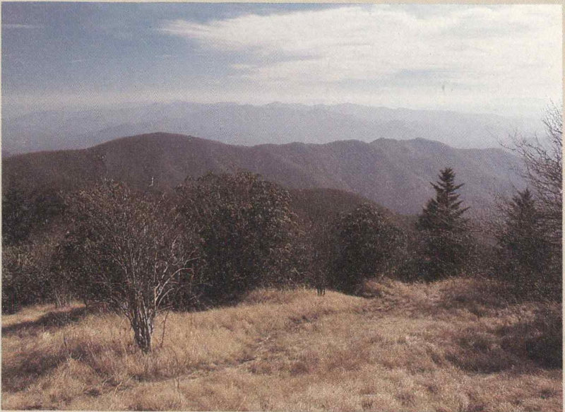 37Most mountains show mosaic patterns of vegetation noticeable at a distance, or on scenic postcards. In the Smokies high country this zoning is conspicuous. These mountains rival the Rockies for all such contrasts, except for naked rock above timberline.
