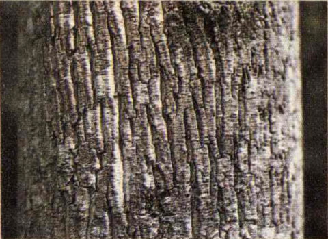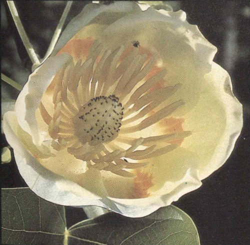 The yellow-poplar grows fast and straight. Its bark has white-sided ridges.