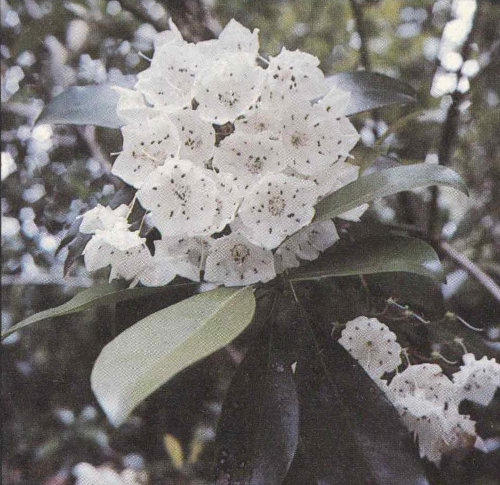 The crack of thunder suddenly wakens us from our reverie. A bank of clouds, dark underneath and contorted with churning air, is rolling over the ridges and into the head of the valley. The clouds shoot lightning toward the slopes below. Hypnotized by the spectacle we remain rooted to our rocks until the first drops fall, then we pull on our ponchos, determined to greet the storm. Soon the valley view is blotted out by boiling clouds. We and a circle of shrubs, both whipped by rain and wind, are all that exist in the world. Our foolhardiness on this exposed knob is soon revealed as lightning flashes so near that its crackling sound is almost instantaneous. We hurry down the trail, now a small torrent where it tunnels through the rhododendrons, and in a few minutes we reach safer ground. We eat our lunch under sheltering hemlocks. When we sense the end of the storm, we head toward our day’s goal, the top of the Smokies. The deciduous forest rapidly turns into a coniferous one, the beech, birch, maple, buckeye, and others giving way to a nearly solid stand of spruce and fir. This is an enchanted forest. Carpets of mosses and ferns, struggling, as it were, for growing space, make delicate patterns on the forest floor. Limber-stemmed shrubs lift round or toothed leaves to the pale, post-storm light filtering through the thick evergreen foliage of the trees 28 above. Out of the stillness, like the voice of some tiny fairy, comes the tinkling medley of a winter wren. We stop and listen. We watch a drop of water fall from the tip of a fern. We feel the coolness, a coolness born of altitude. We have reached Maine right here in the Smokies.