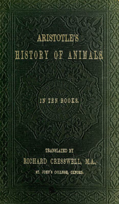 The following Translation of Aristotle's History of Animals has been made from the text of Schneider. In a work of considerable difficulty it is hardly possible entirely to avoid errors; but it is hoped that those which have escaped are neither numerous nor important. The notes of Schneider have been consulted throughout; and in places of difficulty the English translation by Taylor, the French of Camus, and the German of Strack, have been severally referred to.