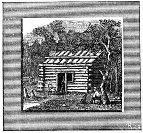 Men, like books, have their beginnings. James Abram Garfield was born on the 19th day of November, 1831. His first outlook upon things was from a cabin door in Cuyahoga County, Ohio. The building was of rough logs, with mud between the cracks, to keep out the winter cold. The single room had a puncheon floor, and on one side a large fire-place, with a blackened crane for cooking purposes. In winter evenings, a vast pile of blazing logs in this fire-place filled the cabin with a cheerful warmth and ruddy glow. Overhead, from the rude rafters, hung rows of well-cured hams, and around the mud chimney were long strings of red-pepper pods and dried pumpkins. The furniture was as primitive as the apartment. A puncheon table, a clumsy cupboard, a couple of large bedsteads, made by driving stakes in the floor, some blocks for seats, and a well-kept gun, 12almost complete the catalogue. The windows had greased paper instead of glass; and, in rough weather, were kept constantly closed with heavy shutters.