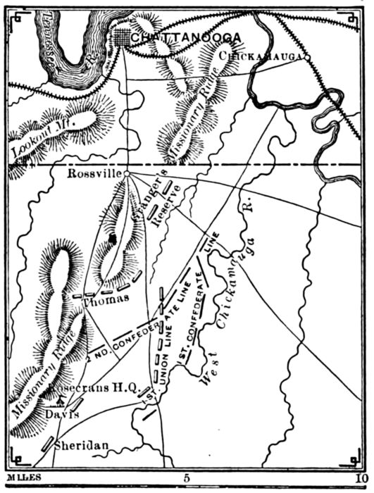 | Brigadier-General Garfield.—Reports to Buell.—A new field of activity.—At Pittsburg Landing.—Stands up for Africa.—Sits on court-martial.—Again the goblin shakes us.—But we report at Washington.—Tries Fitz-John Porter.—Assigned to Hunter’s command.—Appointed chief of staff to Rosecrans.—The commanding general.—Duties of chief of staff.—Personal sketch of Garfield.—Rosecrans dislikes him.—And then likes him.—Sheridan’s ten-pins.—Garfield issues circular on prison pens.—Helps Vallandigham across the border.—Opposes negro insurrection.—Stands by Lincoln.—Organizes army police.—Favors in advance.—The Tullahoma campaign.—Rosecrans’s advance on Chattanooga.—The capture.—Position of Bragg.—The big game begun.—Situation and preliminaries.—The battle of Chickamauga.—Garfield’s part.—Praise and promotion.—We are elected to Congress.—And accept. | 115–166 |