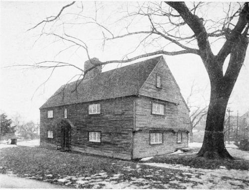 [A] It should be plainly stated that Mr. Chandler, in the course of his investigations and restorations, feels that he has discovered no evidence sufficiently convincing to warrant an assertion, positive beyond all peradventure, that clapboards were applied to the oldest houses at a date subsequent to their original construction and as a remedy for the structural shortcomings of half-timber methods when subjected to the rigours of the New England climate. Clapboards, it is true, were used at a very early date and may, perhaps, have been employed from the first as a coating over an underlying half-timber base. Of one thing, however, there can be no question—the existence of half-timber construction beneath the clapboards in many of the oldest buildings. In view of this assured fact and the early settlers’ habitual fidelity to traditional practices, it seems a not unwarrantable presumption that half-timber work antedated the use of clapboards by some years until the poor quality of the pugging and the warping of unseasoned timbers compelled the adoption of some satisfactory remedy.