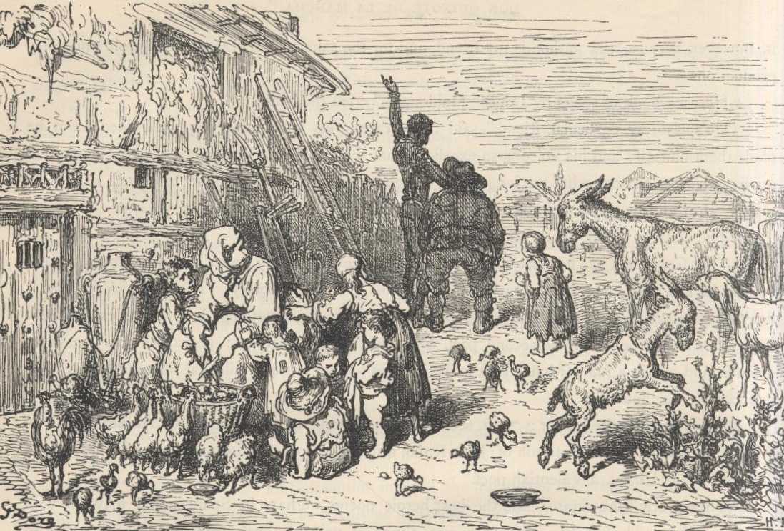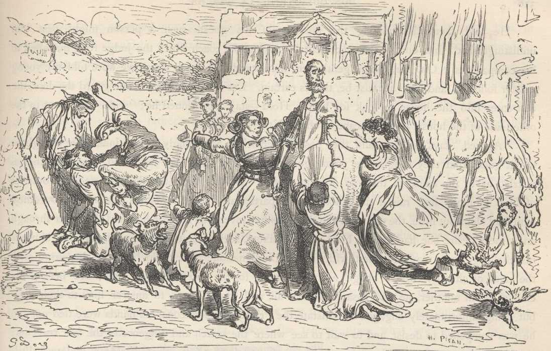 “Thanks be to God,” said she, “for being so good to me; but now tell me, my friend, what have you made by your squirings? What gown have you brought me back? What shoes for your children?”