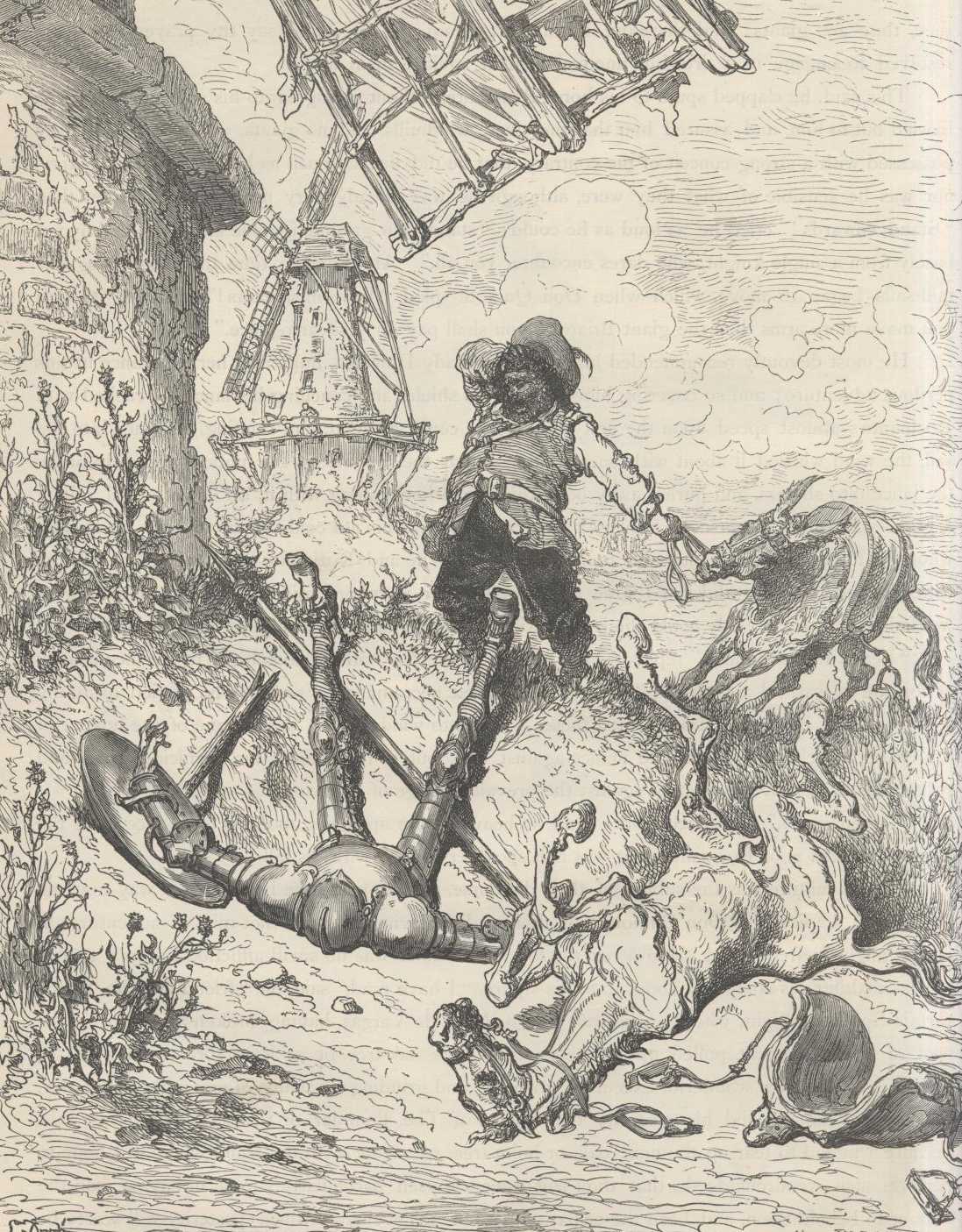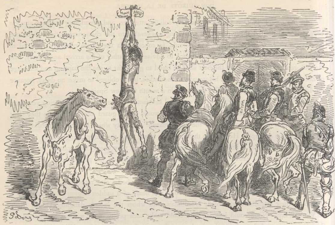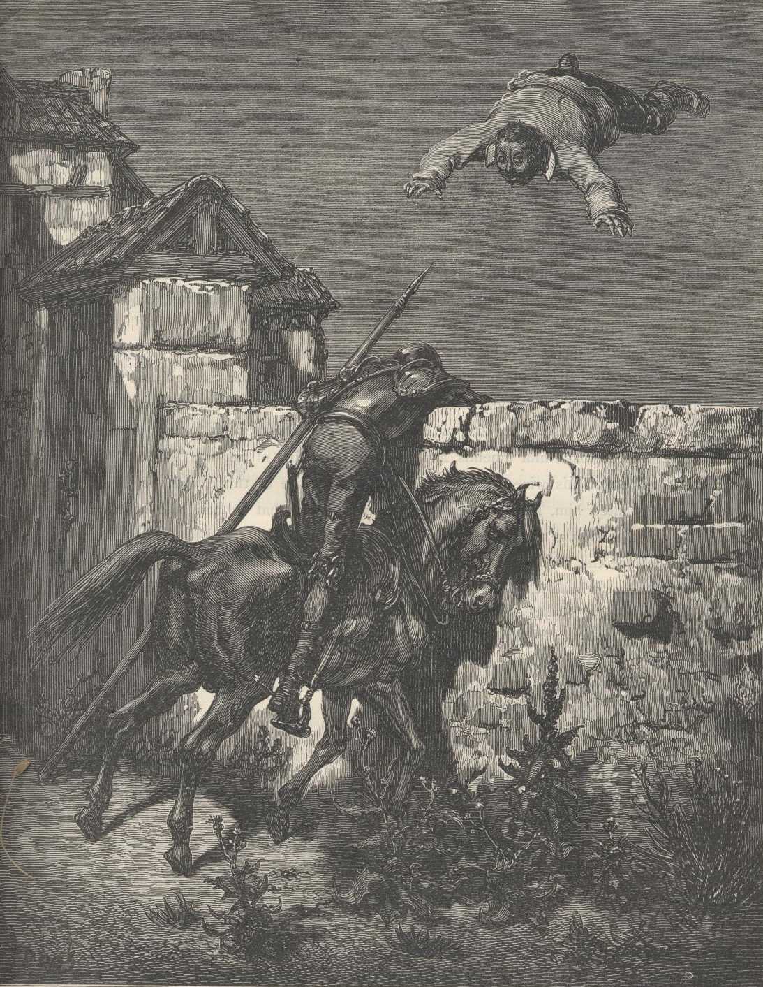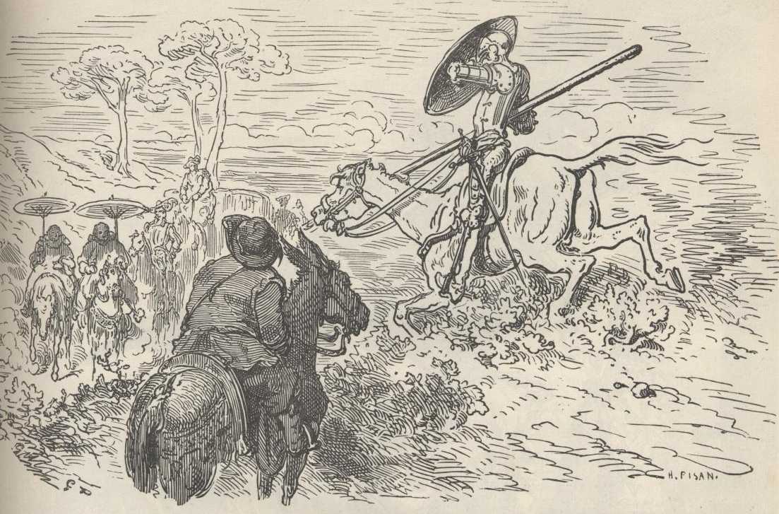 “Who should it be,” said the barber, “but the famous Don Quixote of La Mancha, the undoer of injustice, the righter of wrongs, the protector of damsels, the terror of giants, and the winner of battles?”