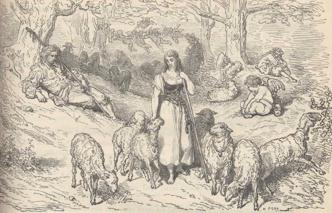 The goatherd gave the goat which he held by the horns a couple of slaps on the back, saying, “Lie down here beside me, Spotty, for we have time enough to return to our fold.” The goat seemed to understand him, for as her master seated himself, she stretched herself quietly beside him and looked up in his face to show him she was all attention to what he was going to say, and then in these words he began his story.