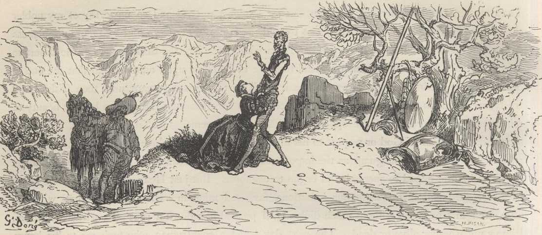 “Ah! now I understand thee, Sancho,” said Don Quixote; “yes, often, and even this minute; get me out of this strait, or all will not go right.”