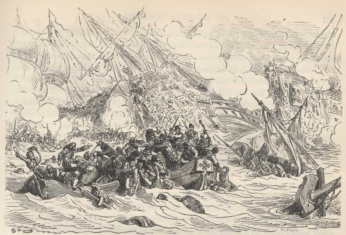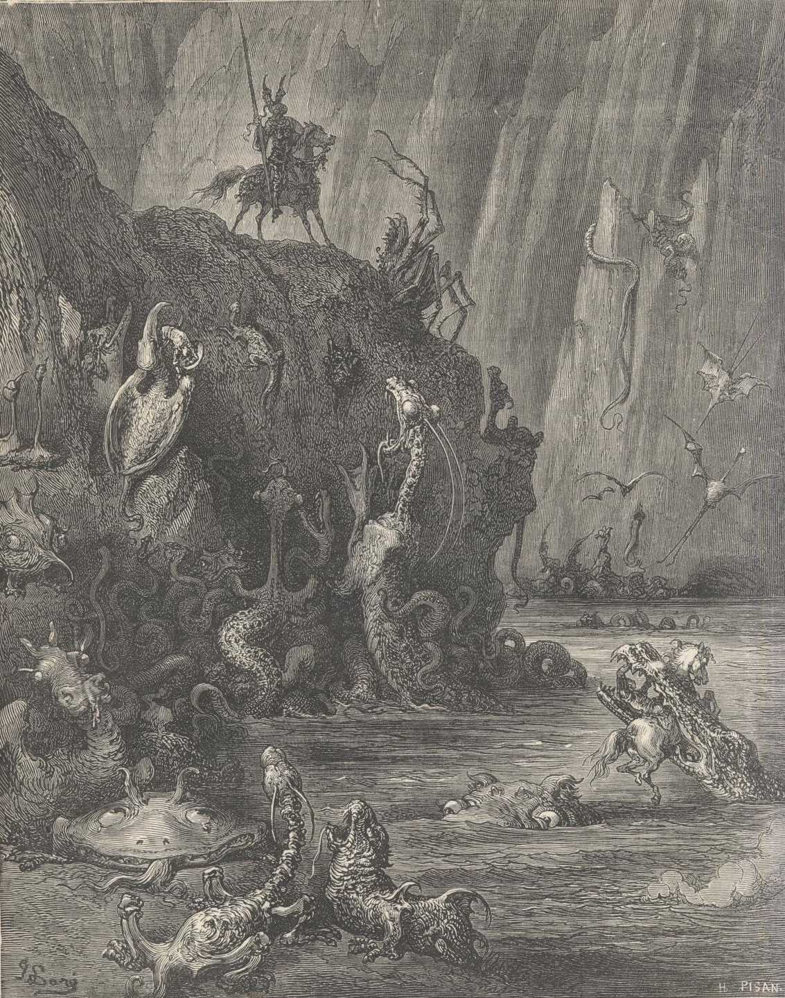 “A good joke, that!” returned Don Quixote. “Books that have been printed with the king’s licence, and with the approbation of those to whom they have been submitted, and read with universal delight, and extolled by great and small, rich and poor, learned and ignorant, gentle and simple, in a word by people of every sort, of whatever rank or condition they may be—that these should be lies! And above all when they carry such an appearance of truth with them; for they tell us the father, mother, country, kindred, age, place, and the achievements, step by step, and day by day, performed by such a knight or knights! Hush, sir; utter not such blasphemy; trust me I am advising you now to act as a sensible man should; only read them, and you will see the pleasure you will derive from them. For, come, tell me, can there be anything more delightful than to see, as it were, here now displayed before us a vast lake of bubbling pitch with a host of snakes and serpents and lizards, and ferocious and terrible creatures of all sorts swimming about in it, while from the middle of the lake there comes a plaintive voice saying: ‘Knight, whosoever thou art who beholdest this dread lake, if thou wouldst win the prize that lies hidden beneath these dusky waves, prove the valour of thy stout heart and cast thyself into the midst of its dark burning waters, else thou shalt not be worthy to see the mighty wonders contained in the seven castles of the seven Fays that lie beneath this black expanse;’ and then the knight, almost ere the awful voice has ceased, without stopping to consider, without pausing to reflect upon the danger to which he is exposing himself, without even relieving himself of the weight of his massive armour, commending himself to God and to his lady, plunges into the midst of the boiling lake, and when he little looks for it, or knows what his fate is to be, he finds himself among flowery meadows, with which the Elysian fields are not to be compared.
