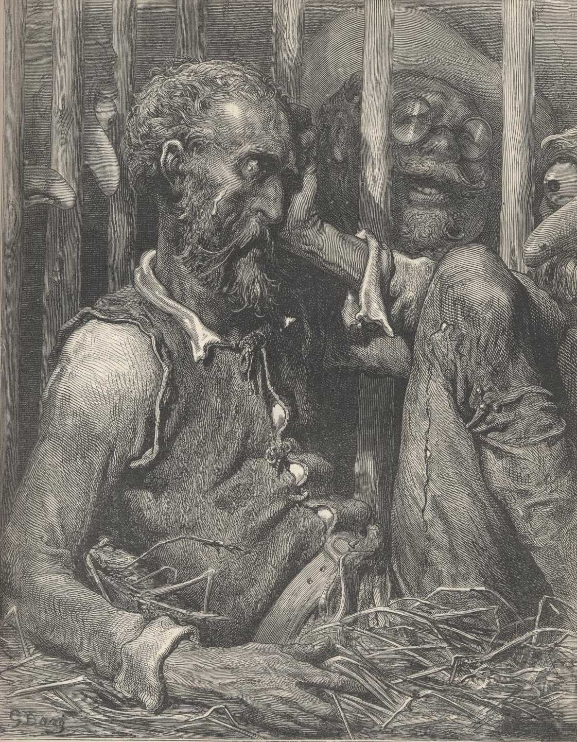 The goatherd eyed him, and noticing Don Quixote’s sorry appearance and looks, he was filled with wonder, and asked the barber, who was next him, “Señor, who is this man who makes such a figure and talks in such a strain?”
