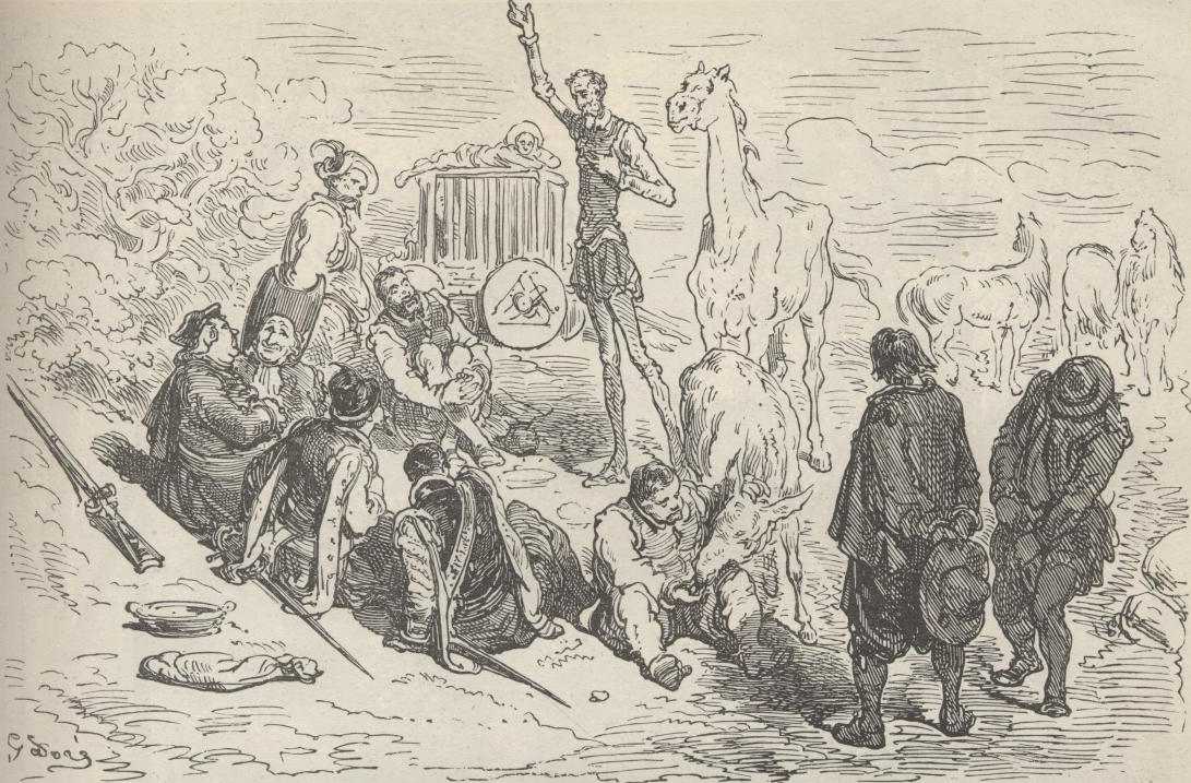“I cannot deny, Señor Don Quixote, that there is some truth in what you say, especially as regards the Spanish knights-errant; and I am willing to grant too that the Twelve Peers of France existed, but I am not disposed to believe that they did all the things that the Archbishop Turpin relates of them. For the truth of the matter is they were knights chosen by the kings of France, and called ‘Peers’ because they were all equal in worth, rank and prowess (at least if they were not they ought to have been), and it was a kind of religious order like those of Santiago and Calatrava in the present day, in which it is assumed that those who take it are valiant knights of distinction and good birth; and just as we say now a Knight of St. John, or of Alcantara, they used to say then a Knight of the Twelve Peers, because twelve equals were chosen for that military order. That there was a Cid, as well as a Bernardo del Carpio, there can be no doubt; but that they did the deeds people say they did, I hold to be very doubtful. In that other matter of the pin of Count Pierres that you speak of, and say is near Babieca’s saddle in the Armoury, I confess my sin; for I am either so stupid or so short-sighted, that, though I have seen the saddle, I have never been able to see the pin, in spite of it being as big as your worship says it is.”