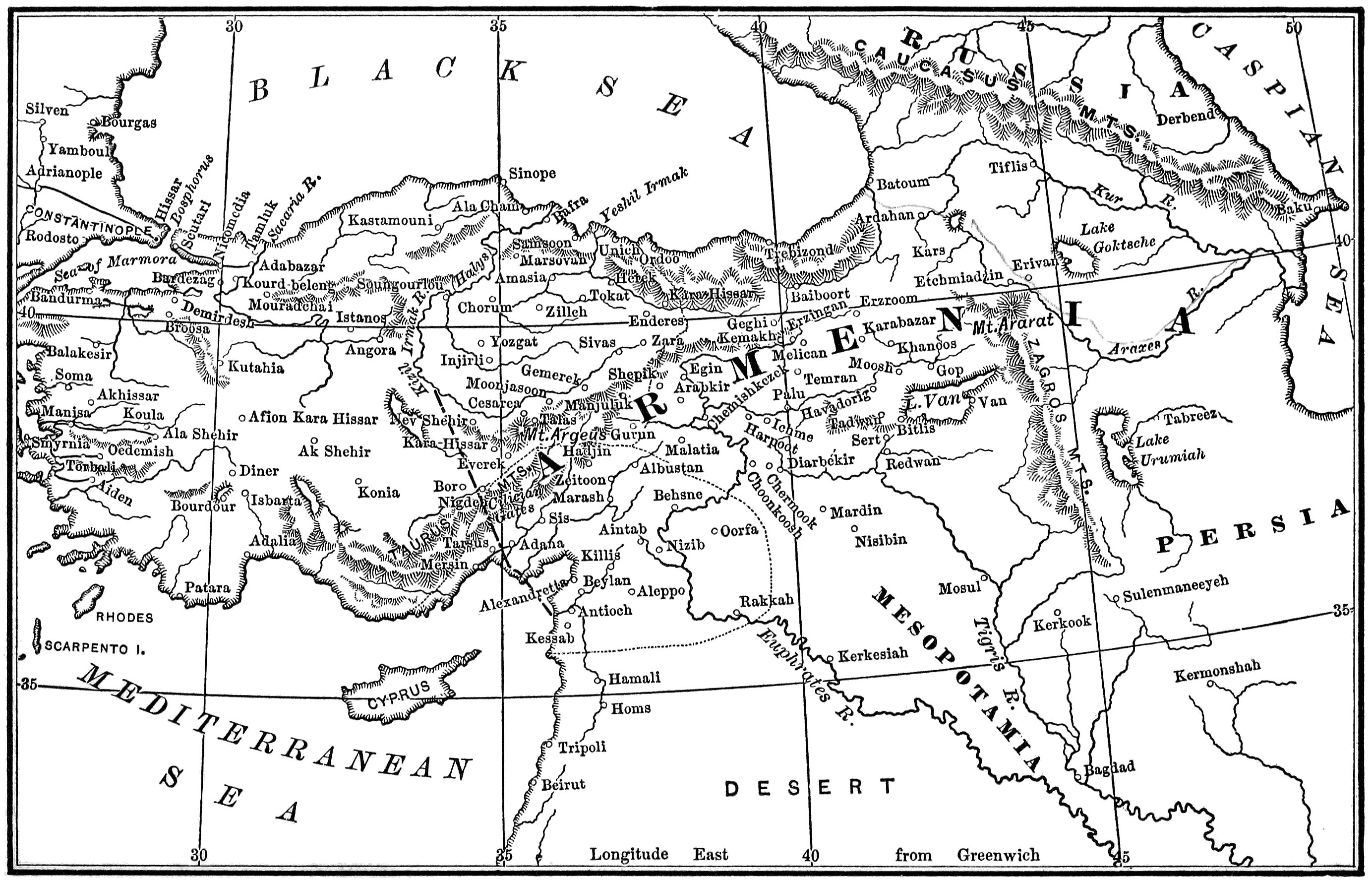 How I finally came to this country would take too long to tell. I will only say that I crossed the ocean by faith. When I reached New York in July, 1879, I had only 15 cents in my pocket. I worked hard day and night in a rag felt factory in the Bowery, and slept on the rags on the floor, covering myself with a piece of flannel. But the Lord opened the way. I went to Oberlin, Ohio, and studied there, supporting myself by sawing wood for the professors of the Theological Seminary. In six months I could talk English well enough to lecture, and after that time I supported myself by lecturing. Finally I was sent to Nebraska as a home missionary during the summer vacation. On my return I entered the Chicago Theological Seminary, and graduated there in 1882, after which I lectured rather widely [xv]through the country. Then I went home, and for a time was pastor of the Constantinople Evangelical Armenian Church. Later I had a call from Marsovan, accepted it, and had so large a congregation there that a church with a capacity of 2,000 was needed. I returned to this country, raised the money, left it in a Chicago bank (where it still lies in trust), and went back to build the church. That very success aroused the jealousy of some wicked men, and they falsely charged me with being the leader of the revolutionary societies in Turkey. On this charge I was banished, and now I am here again,—free and happy with my family, but full of sorrow for my dear people daily martyred by the Turks.
