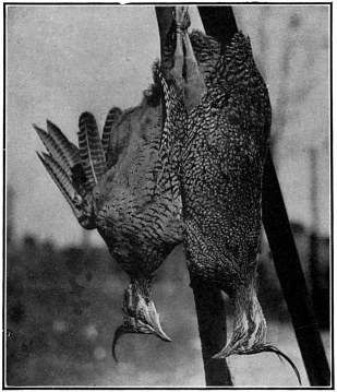 After having gone a short distance, a commotion among the sedges attracted our attention, and a moment later a large gray fox appeared and trotted away. A charge of No. 4 shot stopped him; he was in splendid fur and made a desirable addition to our lot of trophies. Later, we saw them frequently; they haunt the edges of the marsh and feed upon coots and wounded ducks. Carrion-hawks, also, were always about in considerable numbers and reaped a rich harvest.