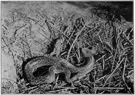 There are two distinct species, namely: the boa-constrictor, or land-snake; and the anaconda, which spends the greater part of its life in and near water. This latter attains the greater length. A fully grown boa-constrictor does not exceed twelve feet in length; ten or eleven feet is the usual size attained. There is a great difference in the tempers of the two species. A boa soon becomes very tame, and in many places the natives keep them running at large in the huts to catch rats. The anaconda is of a restless disposition and easily irritated. Both will bite if annoyed, and while they are not poisonous, they hold very tight with the strong, curved teeth so that if one tried to pull away from them the flesh would probably be torn to shreds.