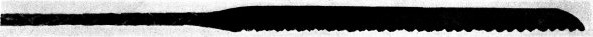 Wie die Sägen der Bronzezeit um's Jahr 1500 v. Chr. aussahen, wissen wir nicht nur aus Funden von Sägen, sondern auch aus Funden von steinernen Gußformen (Seite 11). Vergleicht man die in schweizerischen Pfahlbauten gefundenen Sägen mit denen der Nordländer, dann muß man zu der Annahme kommen, daß man in Mitteleuropa damals kleine Bronzesägen in Form gerader Stichsägen verwendete. Das Blatt verjüngt sich zur Spitze hin nur wenig. An einem Ende hat es ein Loch, um es im Handgriff festzuhalten. Ein Exemplar aus dem Pfahlbau Möringen, das sich jetzt im Landesmuseum zu Zürich befindet, ist 140 mm lang und an den Zähnen nicht ganz 2 mm breit.