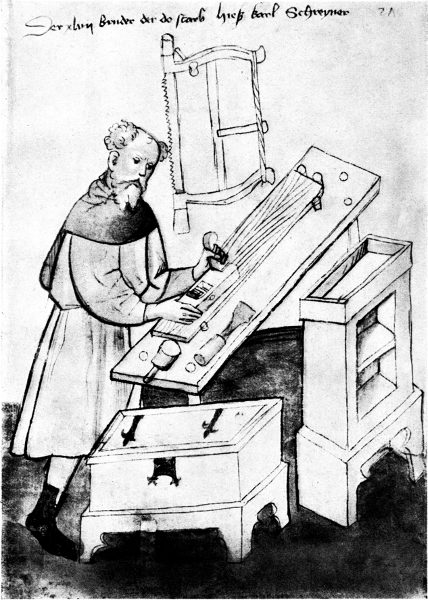 [31] Handschrift Amb. 217 des Städtischen Archivs zu Nürnberg; F. M. Feldhaus, Technik der Vorzeit, 1914, S. 702.