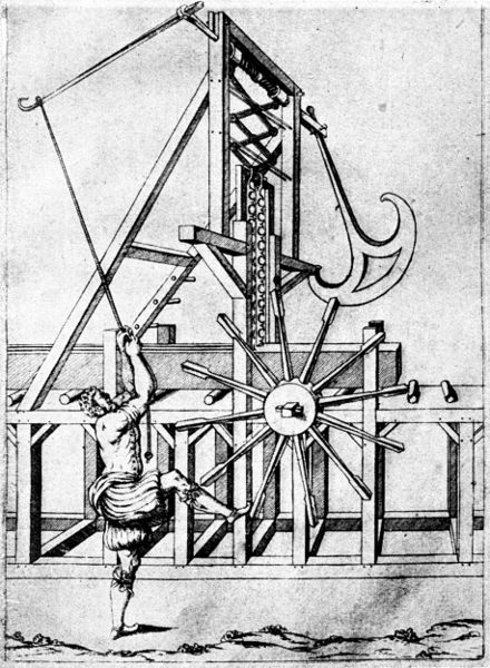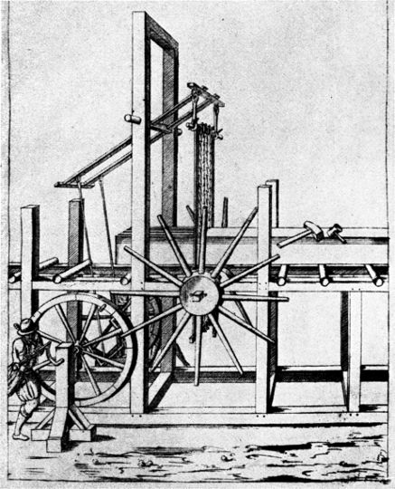 Die großen Sklavenmassen des Altertums verrichteten alle, auch die schwierigsten und eintönigsten Arbeiten, und so kam es, daß die Maschine nur da einzugreifen brauchte, wo der Sklavenarm nicht zufassen konnte. Das Altertum kannte Windräder, Wasserräder und Göpel, aber es verwendete sie nur selten, weil Mühlen, Pumpen und andere Maschinen von Sklaven bewegt wurden.