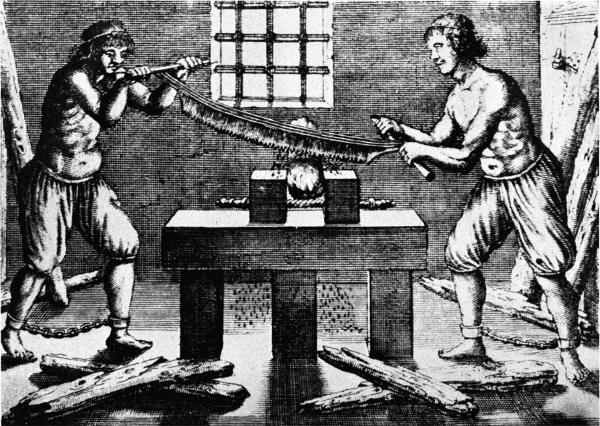 Seilsägen waren bei den Bewohnern der Landenge von Panama in Gebrauch, ehe die Europäer nach Amerika kamen. »Die Einwohner machen Seile von einem gewissen Kraute, welches von ihnen Neqvon oder Henechen genennet wird, und solche Blätter hat, die einer Distel ähnlich sehen, mit denen sie so, wie wir mit dem Hanff oder Flachs, umzugehen pflegen, und sie nicht allein zum binden brauchen, sondern auch Eisen damit zu schneiden: Denn sie ziehen diese Stricke wie eine Säge hin und her, und thun das rauhe Ende auf die Stelle, wodurch sie schneiden wollen.« Der Berichterstatter vergaß hier zu sagen, ob die Eingeborenen mit den Pflanzenfasern allein mühsam sägten, oder ob sie Corund, Schmirgel oder etwas ähnliches hinzufügten[35].