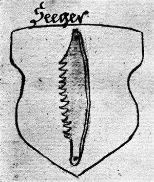 Unter den ersten 12 Brüdern ist als fünfter ein »Säger« abgebildet. Das Blatt ist aber leider stark beschädigt, denn es ist seit langer Zeit das erste Blatt des Buches, weil die vier voraufgehenden Blätter weggerissen sind. So hatte es keinen Zweck, die Bruchstücke dieses Bildes photographieren zu lassen. Eine Beischrift zu dem Bilde sagt: »Der fünft bruder hyess Hans vnd was ein Seger«.