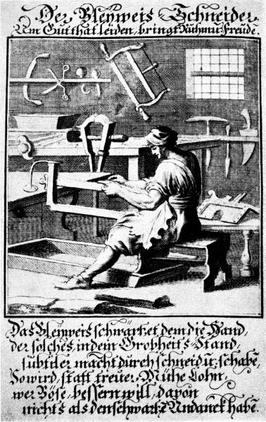 [74] Martin Engelbrecht, Assemblage nouveau des Manouvries habilles. Neueröffnete Sammlung der mit ihren eigenen Arbeiten und Werckzeugen eingekleideten Künstlern, Handwerckern und Professionen, Augsburg um 1730, Blatt 22.
