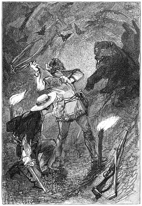 Hij steeg af, bespiedde met zorg den omtrek, nam zijn paard bij den toom en geleidde het naar een dicht kreupelbosch, waar hij het zorgvuldig verborg en met de lasso aan een boomstam vastmaakte, na het eerst de bossal (het gebit) te hebben afgedaan om het te vrijer te laten grazen.