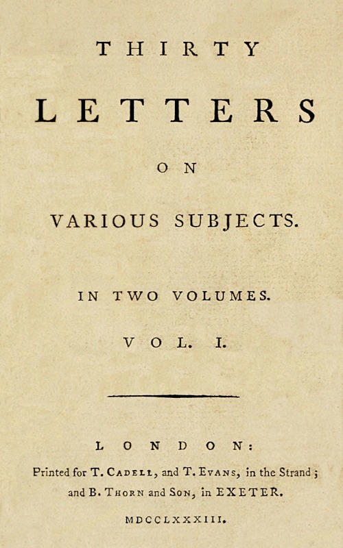 Title: Thirty Letters on Various Subjects, Vol. 1 (of 2)