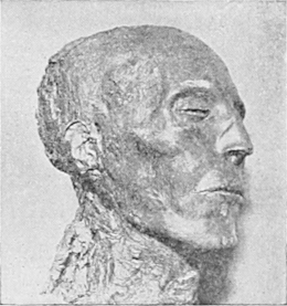 That they profited by this experience is evident from the changes they effected in their technique after they had realized wherein the 60 methods employed during the twentieth dynasty failed to attain the desired aim. For their innovations were directed towards remedying the most obtrusive distortions found in the mummies of the nineteenth and twentieth dynasties. The sunken cheeks were filled out by means of packing them with linen or mud, artificial eyes were inserted, the nose, lips, and ears were protected from distortion by wax plates, and the cheeks were painted. Many other devices were introduced to convert the mummy from a shrunken caricature into a more life-like portrait.