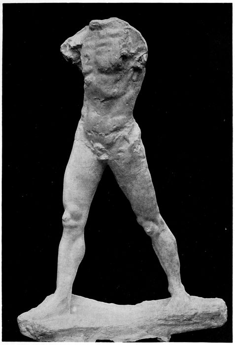 “I pardon you this impertinence,” Bourdelle answered, “because you take half for yourself.” He began gayly, but ended in a momentary crisis of pessimism, as he added: “But I won’t contradict you. It is true that we are good for nothing. When I think of my father, who was a stonecutter, I say to myself, ‘His work was necessary 230to society. He prepared the building materials for men’s houses.’ I can see him now, good old man, conscientiously sawing his blocks of freestone, winter and summer, in the open workshop. His was a rugged type such as we do not see nowadays. But I—but we—what service do we render to our kind? We are jugglers, mountebanks, dreamers, who amuse the people in the market-place. They scarcely deign to take an interest in our efforts. Few people are capable of understanding them. And I do not know whether we really deserve their good-will, for the world could very well get on without us.”