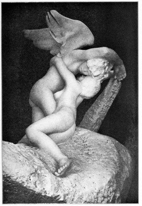 We were walking along the rotunda which serves as the atelier. There under the peristyle many charming bits of antique sculpture have found shelter. A little vestal, half-veiled, faces a grave 10orator wrapped in his toga, while not far from them a cupid rides triumphant upon a great sea-monster. In the midst of these figures two Corinthian columns of charming grace raise their shafts of rose-colored marble. The collection here of these precious fragments shows the devotion of my host to the art of Greece and Rome.