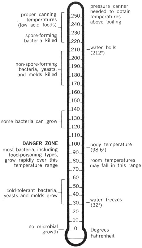 60-120 | DANGER ZONE most bacteria, including food-poisoning types, grow rapidly over this temperature range |