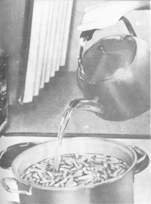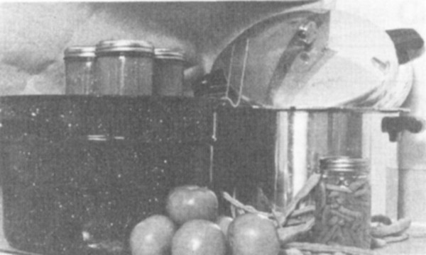 Processing—Heating food in closed canning jars to insure destruction of micro-organisms so the canned food will remain unspoiled and safe to eat. Acid foods—such as fruits, tomatoes, and pickles—and jams and preserves are safely processed in a boiling-water-bath. Low-acid vegetables (all vegetables except tomatoes) require processing at higher temperature by use of a pressure canner or pressure saucepan. Times required to insure an adequate process are specified in canning directions for each food.