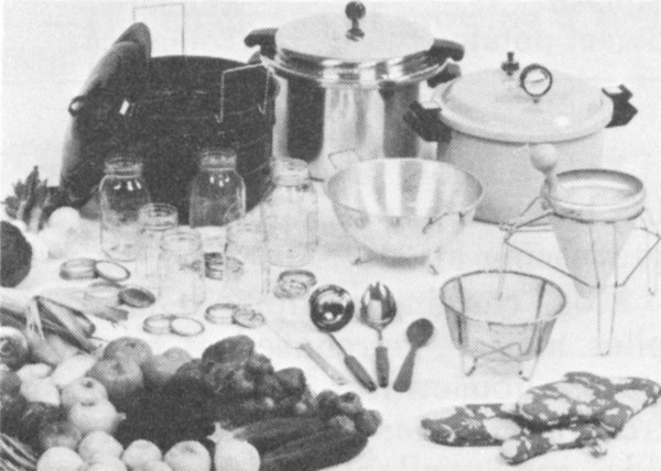 Steam-pressure Saucepan—Smaller than a canner. If equipped with a gage to maintain pressure at 10 pounds, it is suitable for processing food in pint jars.