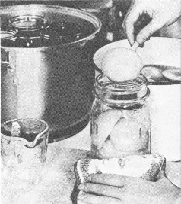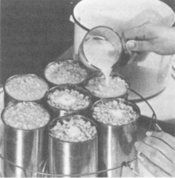 Open-kettle Canning—Procedure whereby food is cooked in an ordinary kettle, then packed into hot jars and sealed. Jars of food receive no additional heat processing. This is a dangerous practice as spoilage organisms may enter the jar during the transfer of food from kettle to jar. In low-acid foods, 384 temperatures obtained are not hot enough to insure destruction of all spoilage organisms that may be present in the food.