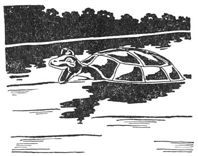 When he was tired swimming, he would turn over on his shell and float with all his legs kicking in the water, just as the Baby kicks in his bath.