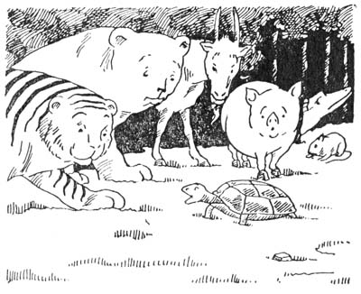 “Hssh!” said Mrs. Tortoise. “He’s just dropping off.”