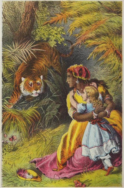 “O Missee Baba, we’re lost!” cried the poor Hindu; “lost here in the dreadful jungle, full of wild beasts and snakes!”