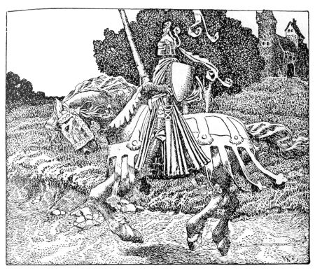 But the trunk of the body of that knight did not fall, but instead of that it stood, and it walked to where the head lay, and the hands of the trunk picked up the head and they set the head back upon the body and, lo! that knight was as sound and whole as ever he had been in all his life.