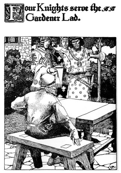 Then King Arthur said unto Sir Gawaine, “Sir, art thou willing to fulfil my pledge unto this old woman?” And Sir Gawaine said, “Yea, lord, whatsoever thou requirest of me, that will I do.” So Sir Gawaine came to the old woman and took her hand into his and set it to his lips; and not one of all those present so much as smiled. Then they all turned their faces and returned unto the King’s castle; and they were very silent and downcast, for this was sore trouble that had come upon that Court.