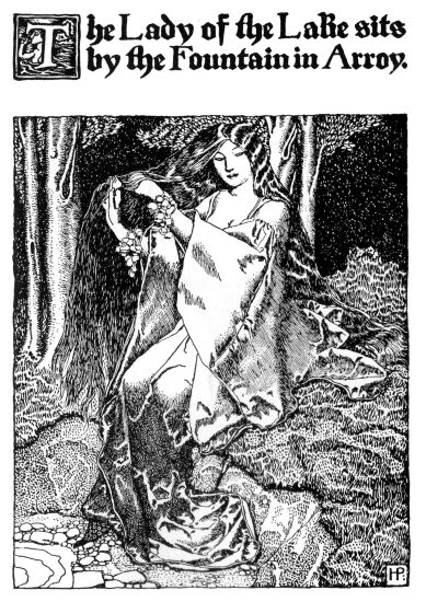 So they sat together for a long time, hand in hand. Then after a while Sir Gawaine said, “Lady, who art thou?” Unto which she made reply, “I am one of the Ladies of the Lake; but for thy sake I have become mortal like to other women and have quit that very beautiful home where I one time dwelt. I have kept thee in my heart for a considerable while, for I was not very far distant at that time when thou didst bid adieu to Sir Pellias beside the lake. There I beheld how thou didst weep and bewail thyself when Sir Pellias left thee, wherefore my heart went out to thee with great pity. So, after a while, I quitted that lake and became mortal for thy sake. Now, when I found the trouble into which King Arthur had fallen I took that occasion to have him fetch me unto thee so that I might test the entire nobility of thy knighthood; and, lo! I have found it all that I deemed it possible to be. For though I appeared to thee so aged, so ugly, and so foul, yet hast thou treated me with such kind regard that I do not believe that thou couldst have behaved with more courtesy to me had I been the daughter of a king. Wherefore it doth now afford me such pleasure for to possess thee for my knight and my true lord, that I cannot very well tell thee how great is my joy therein.”