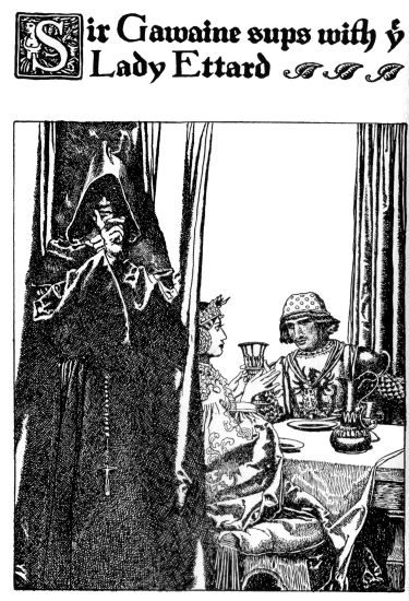 Then, after that, he went forth and called with a great voice all through that house, and the people of the house came running from everywhere. And he commanded that the people should bring lights and refreshments, and they brought the lights, and when they had brought them and beheld that beautiful lady instead of the aged dame, they were filled with great wonder and joy; wherefore they cried out aloud and clapped their hands together and made much sound of rejoicing. And they set a great feast for Sir Gawaine and his lady, and in place of the sorrow and darkness that had been, there was joy and light, and music and singing; wherefore those of the King’s Court, beholding this from a distance, said, “It is very strange that Sir Gawaine should have taken so much joy of having wedded that old beldame.”