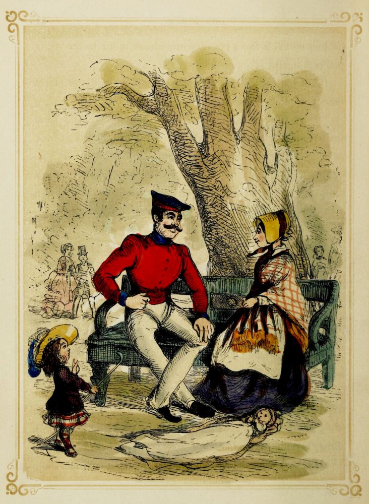It was Mrs. Stafford Molyneux’s children, however, whom I pitied the most. Once her boy, in a flaring tartan, went up to speak to Master Roderick Lacy, whose maid was engaged ogling a policeman; and the children were going to make friends, being united with a hoop which Master Molyneux had, when Master Roderick’s maid, rushing up, clutched her charge to her arms, and hurried away, leaving little Molyneux sad and wondering.