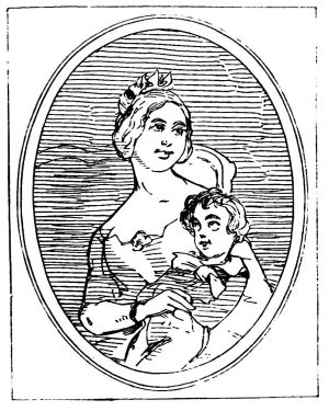 (as if such a pig of a child could ever have been dressed in anything resembling a skeleton)—I remember, I say, Mrs. B. sitting to Pinkney in a sort of Egerian costume, her boy by her side, whose head the artist turned round and directed it towards a piece of gingerbread, which he was to have at the end of the sitting.